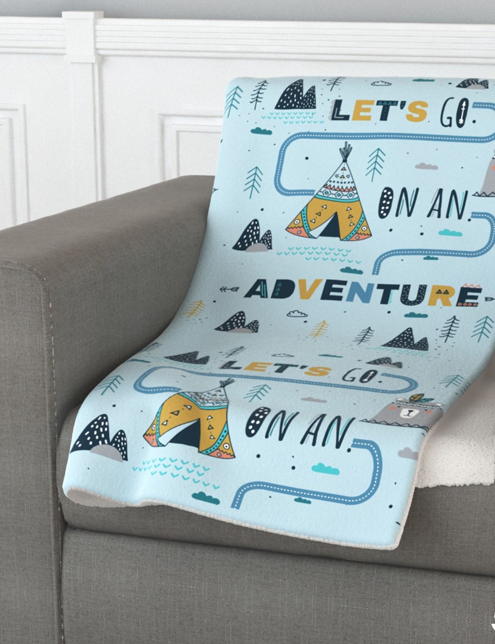 Manta multiusos infantil .Doble textura. Bonito Diseño de cuento infantil con Tipies
