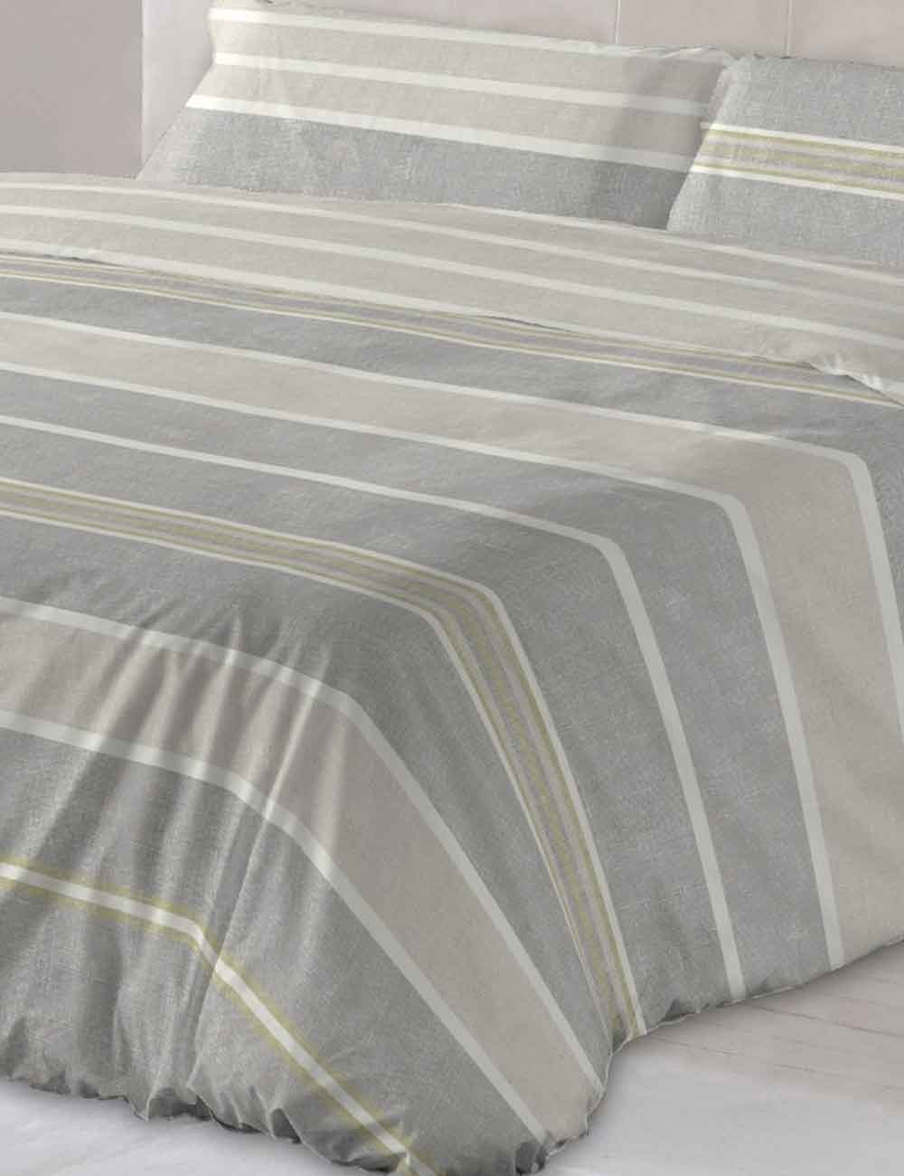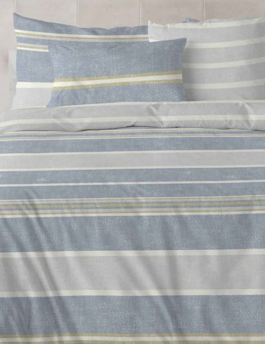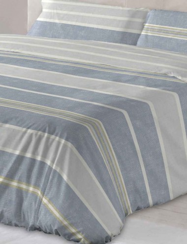 Bonita funda nórdica 100% algodón en estampado a franajas de diferentes tonalidades y anchuras . Muy elegante y no pasa de moda , disponible en tres colores. |