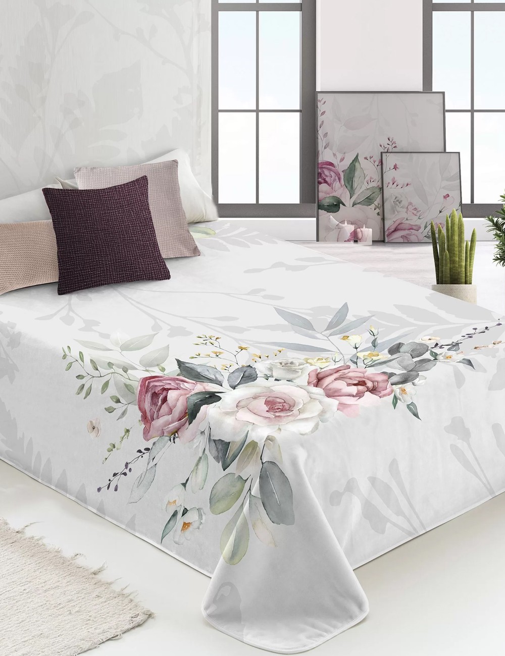 Manta de estampado floral con tacto terciopelo suave y muy agradable. Ideal para vestir tu cama en invierno.