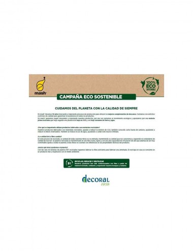 Relleno Nórdico Decoral Eco Antiácaros de 300g/m2 , con un relleno de fibras 100% eco sostenibles, procedentes de botellas de plástico recicladas, cuyo proceso está certificado por Dacron, para garantizar una máxima idoneidad para el descanso. A estas fibras se les aplica un tratamiento antiácaros, antibacterias y antihongos, que lo convierte en ideal para las personas alérgicas.